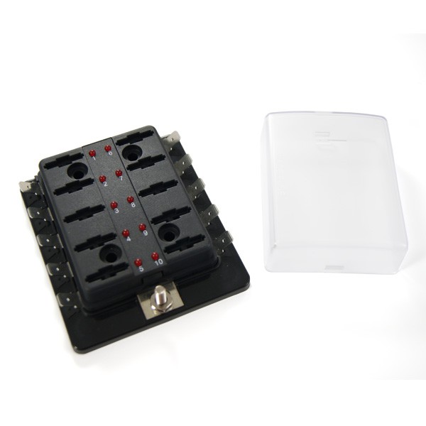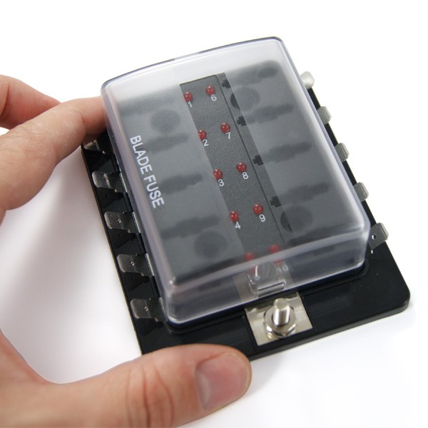 Kaitsmekarp 10 kaitsmele. Läbi läinud kaitset ei pea enam otsima testeriga. Kui mõni kaitse on läbi, siis selle juures olev märgutuli läheb põlema.
